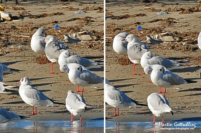Beskrivelse: Returning bird (first seen in June 2013 at Molfetta) now among thousands of wintering Black-headed Gulls and back since 28th Nov. 2014. The bird comes every day around midday to a roosting site. On 12th Dec. sadly it stayed only for 2 minutes then departed after having a bath and started preening. Indeed very happy for getting these two record shots!