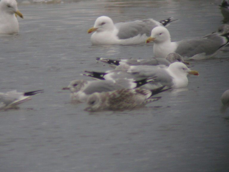 Stort set ufældet ryg med enkelte indslag af grå fjer. Undergump med meget tydelig sort "barring". Bug + bryst smudsig brun. Næbbet lidt længere end ssp. canus. Har ikke kunne finde nogle billeder af 1. vinter ssp. heinei på nettet. Fuglen blev også set dagen efter af KO, altså den 17/2.